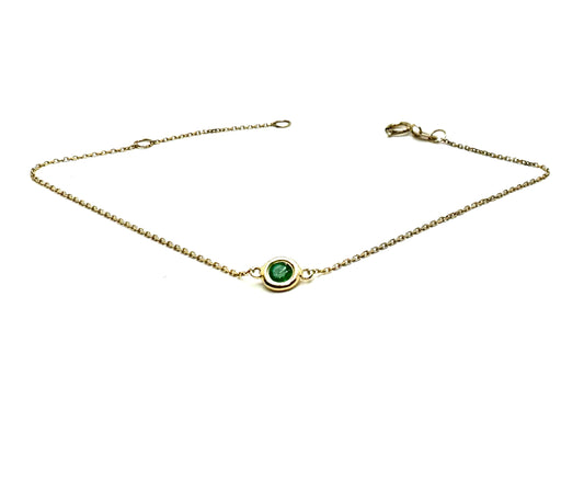 Natural Emerald Solitaire Yellow Gold Bracelet 6-7”
